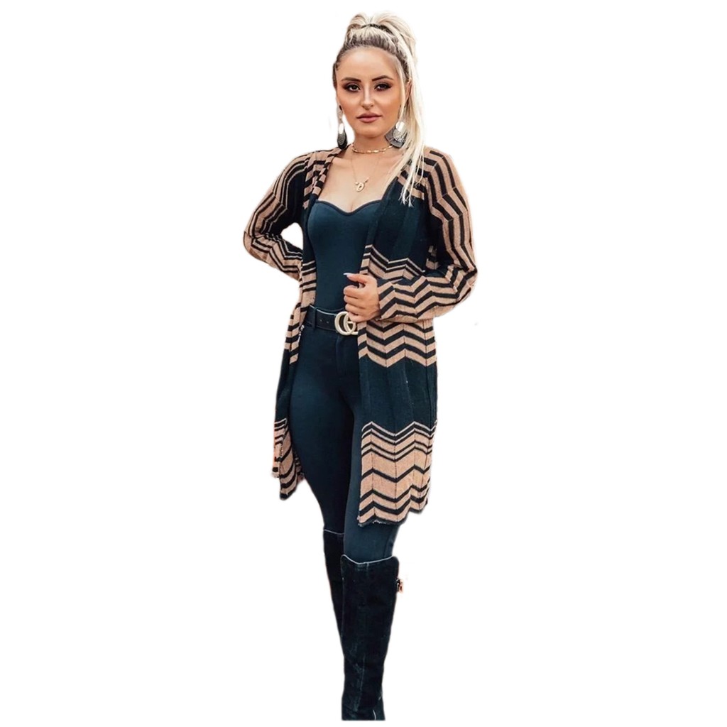 Cardigan Kimono Casaco Feminino Manga Longa Aberto Canelado