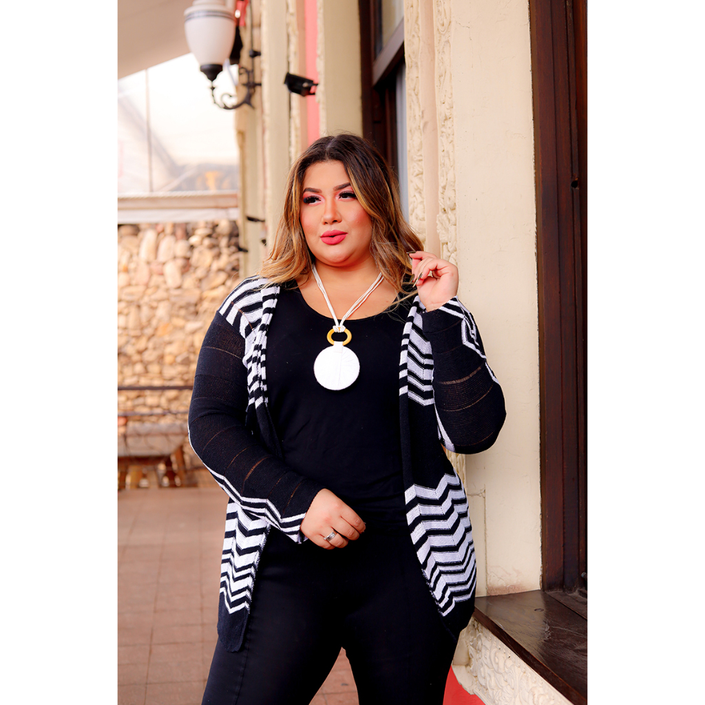 Kimono Plus Size Zig Zag Casaco Cardigan Reto Aberto Luxo