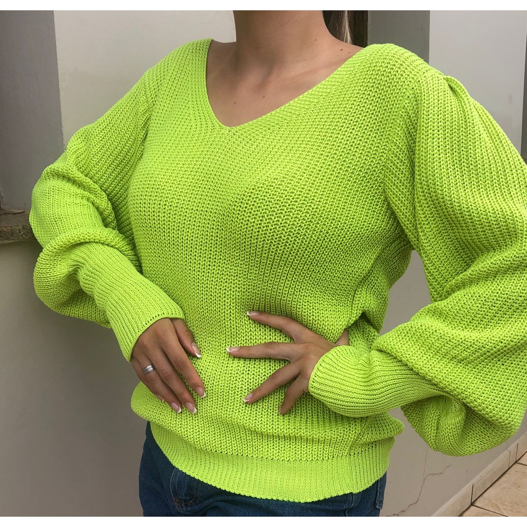 Blusa Fang Tricot Trico Feminina Gola V Manga Bufante Blusa De Frio