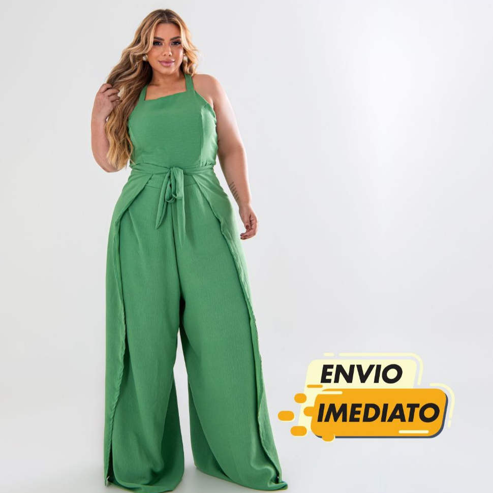Macacão Pantalona Plus Size Longo Elegante Feminino Envelope Liso EXG Plus Size Curve