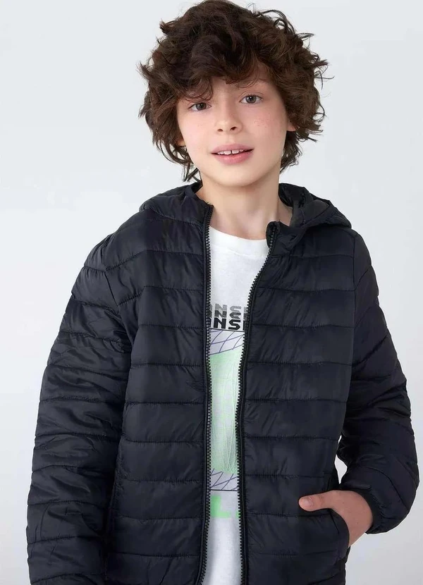 Hering - Jaqueta Puffer Infantil Unissex com Capuz Tam 1 a 16 Preto